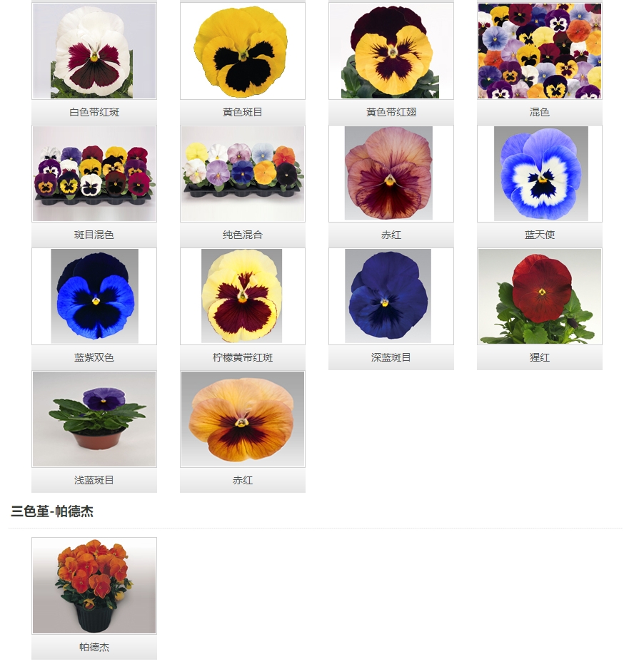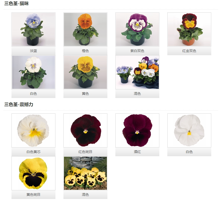 植株緊湊,分枝佳,中大花型,花徑大(約8-10厘米),早花,所有花色的花期一致,利于銷售,花柄短且強健,花朵直立,不易下垂,長勢旺,花色豐富,花期長。貨架期長,春秋種植理想之選。耐旱性強,市場反應極佳的品種。植株耐熱抗寒,盆栽及露地栽培表現均極其卓越,極端天氣條件下皆能成活,符合您的生產需求。32種艷麗獨特的花色任您選擇,有純色也有花斑,所有花色花期一致持久,花量多,完全滿足您的銷售需求。歐美三色堇主流品種之一,在中國各地區,經過近5年的推廣,因其高發芽率及出苗整齊,株型佳,極早花,性價比高等優點正受到越來越多花卉生產業者青睞的進口三色堇品種。 德國班納利種子有限公司榮譽授權愛墾園藝中國市場專賣品種。