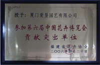 ?2006年被授予參加第六屆中國花卉博覽會貢獻突出單位