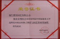 ?2012年“城市景觀組合”榮獲第四屆中國福建花王評選暨花卉精品展種子種苗與園藝資材類銅獎