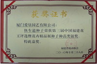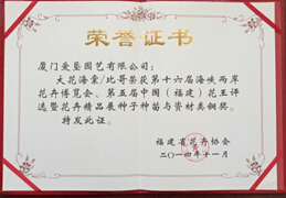 ?2008年被授予2006-2007年福建省花卉產業發展貢獻獎