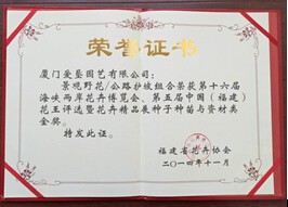 ?2016年被授予第十七屆海峽兩岸花卉博覽會中國花王暨花卉精品展銷會參展工作先進單位